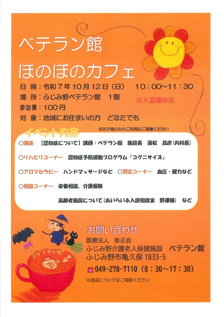 令和7年10月12日(日)10:00~11:30オレンジカフェ 『ほのぼのカフェ』を行います。どうぞお気軽にご参加ください。